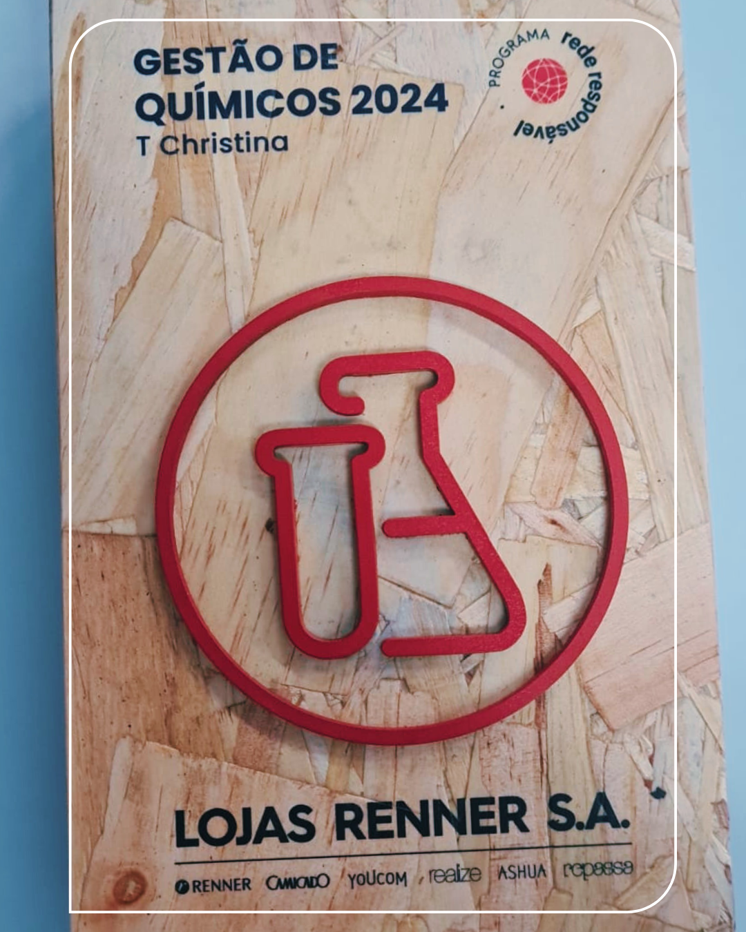 Entregue pelas mãos do gerente de gestão de fornecedores, Renan Pedot, à nossa gestora de qualidade, Liciana Chaud. Antes disso, nossos produtos foram testados e declarados livres de substâncias químicas nocivas e, portanto, banidas pela marca. E isso só foi possível porque o trabalho acontece em cadeia, com nossos fornecedores de matéria-prima e seus parceiros de beneficiamento também comprometidos com o padrão de qualidade e de segurança da Renner.