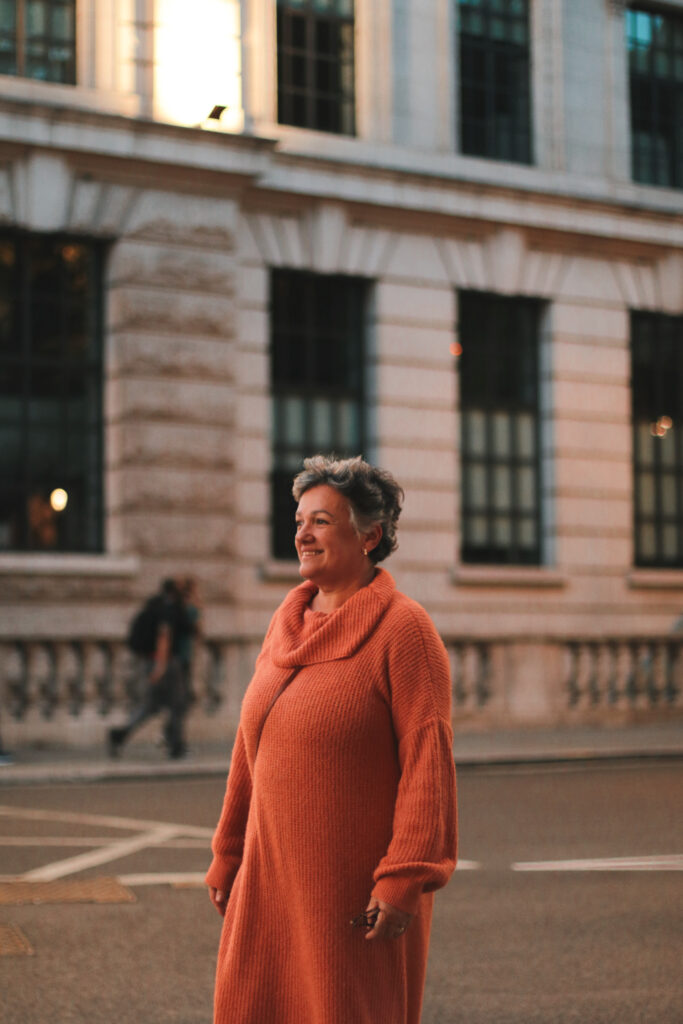 Neste mesmo dia, recebemos a visita inesperada da jornalista criadora do postcast Wardrobe Crises, Clare Press. Clare foi Editora de Sustentabilidade na Vogue Austrália, foi primeira Embaixadora Global da iniciativa Make Fashion Circular da Ellen MacArthur Foundation. É conselheira do Fashion Revolution desde 2014 e também integra o Conselho Consultivo da Copenhagen Fashion Week, entre outras atuações de relevância e influência. Durante o evento, Clare fez o convite para uma entrevista com Agustina, que aconteceu no dia seguinte e ainda não foi ao ar.